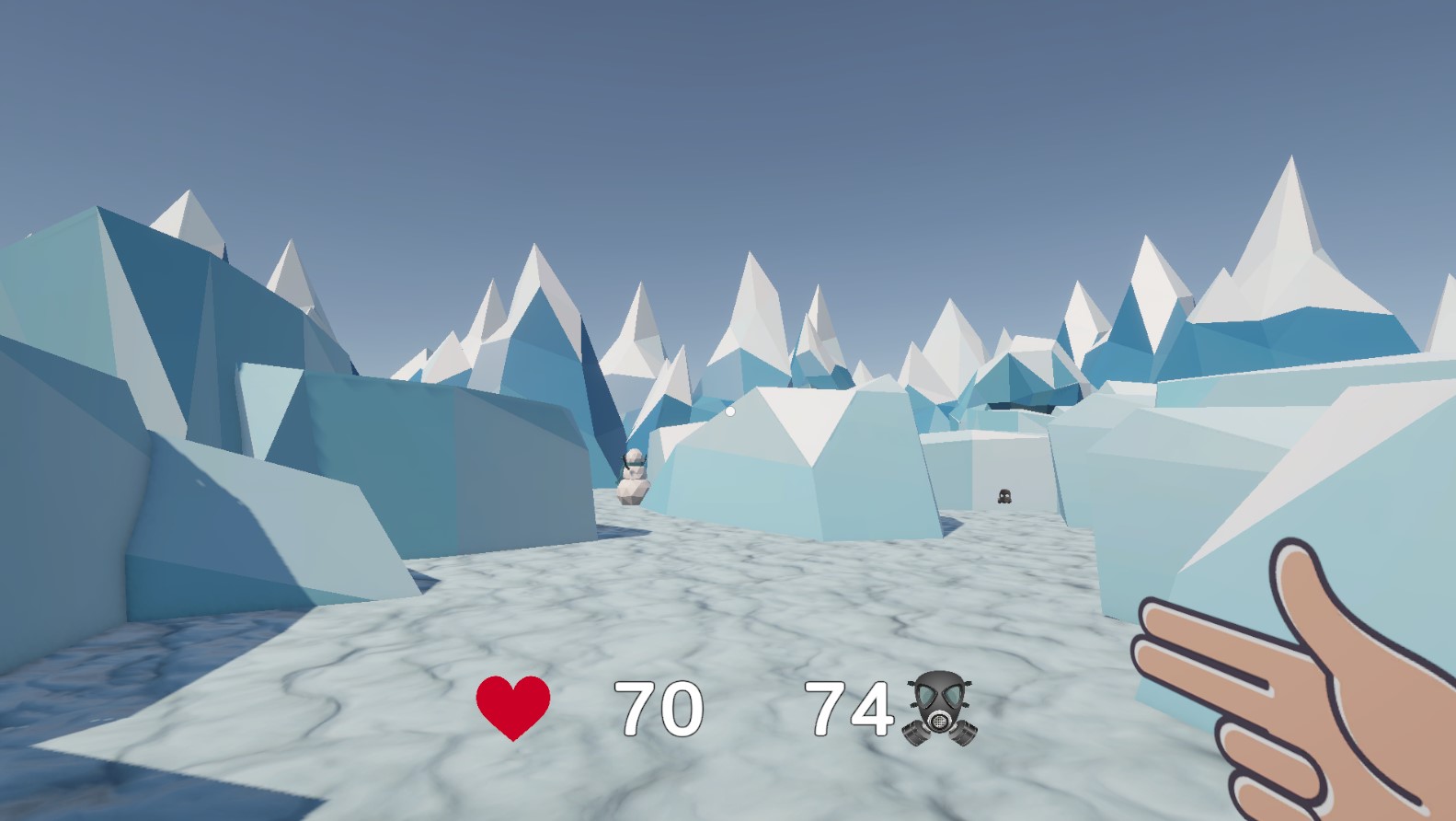 A short FPS game, blast Snowpeople and escape. Health and gas mask filters can be found around the level, but don't take too long or you'll run out of filters and suffocate. Credits are located in README.md